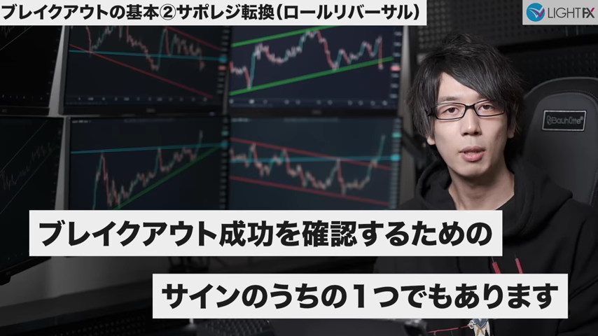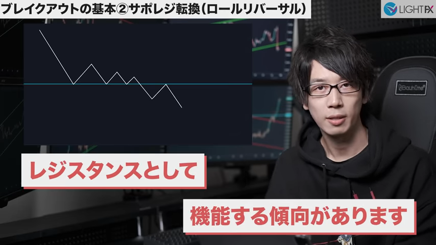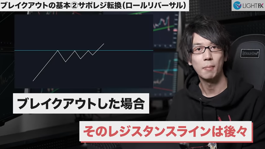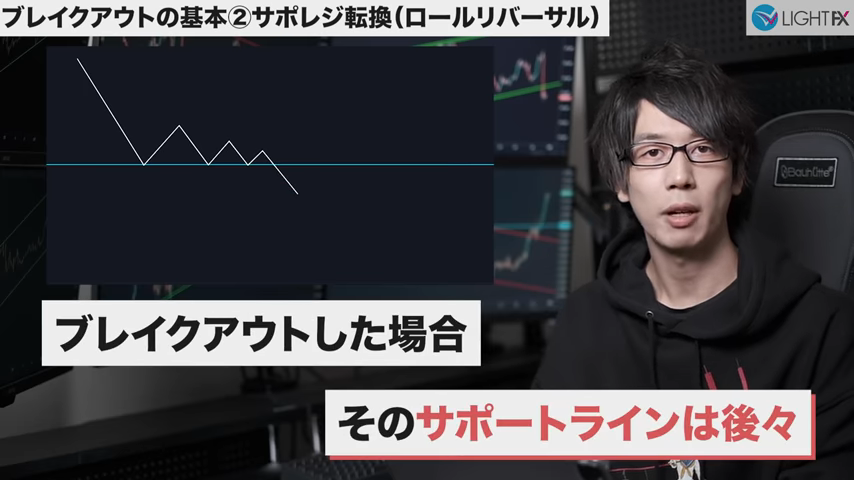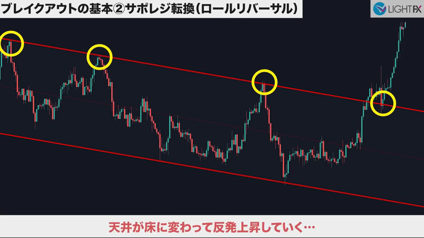 ラインを抜けサポレジ反転したら、トレンドが変わった可能性あり。