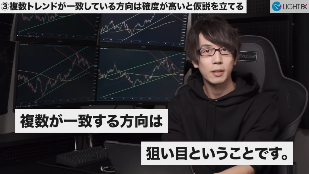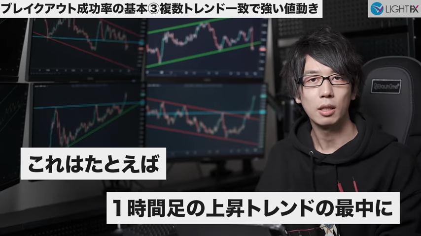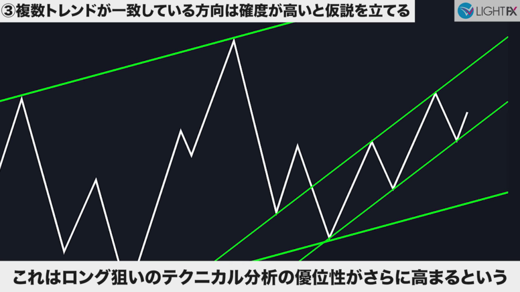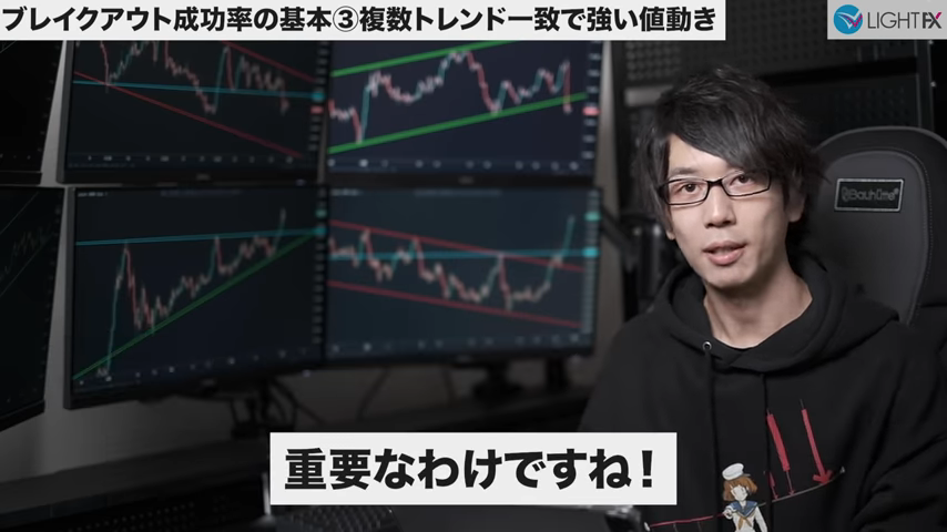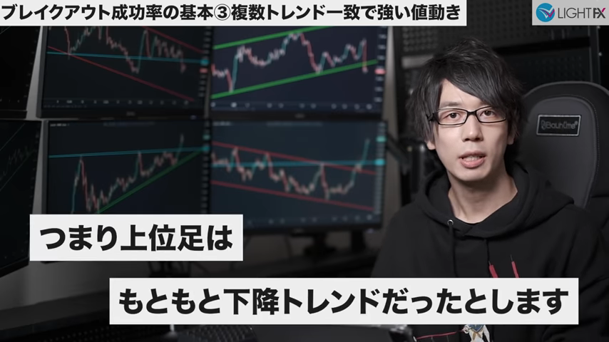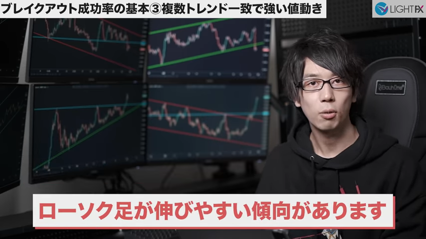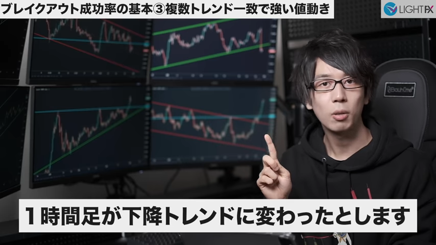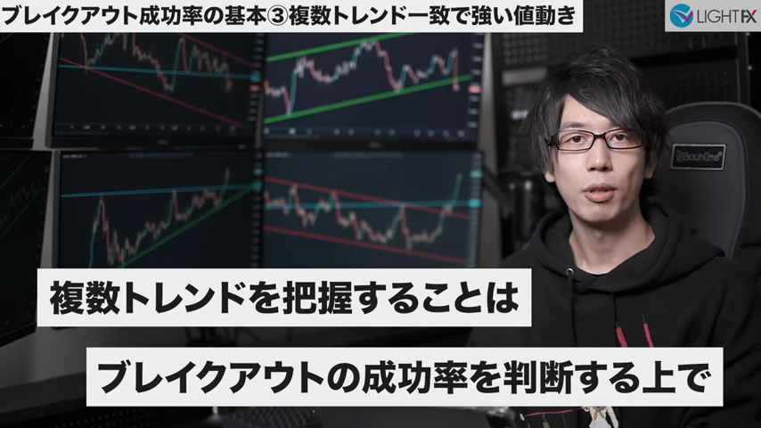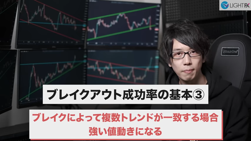 ブレイクによって複数トレンドが一致する場合強い値動きになる