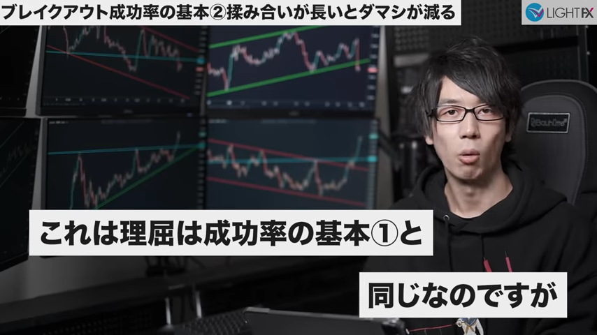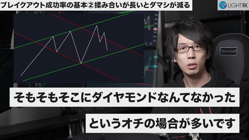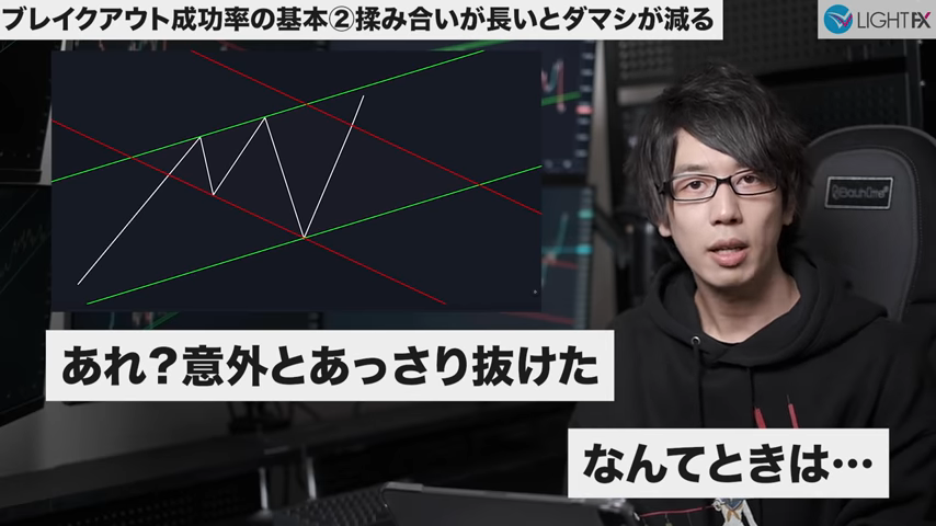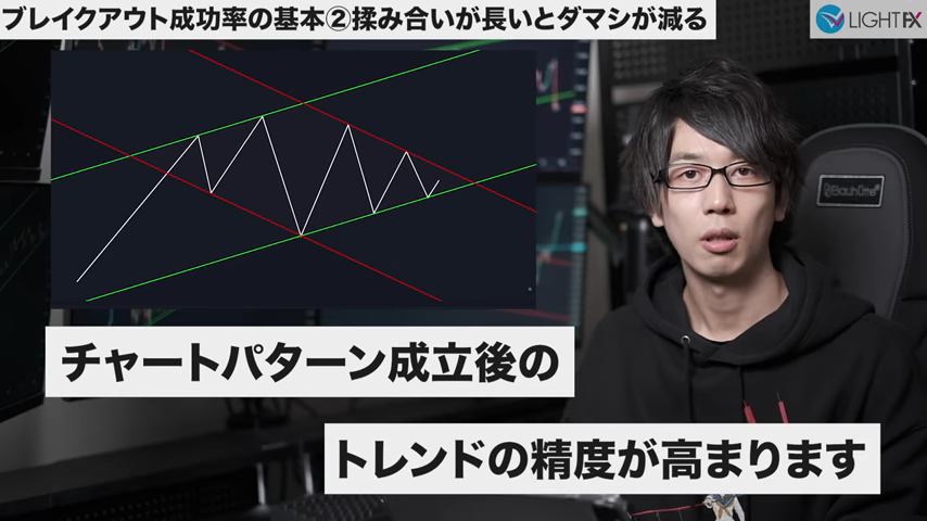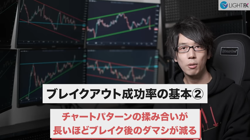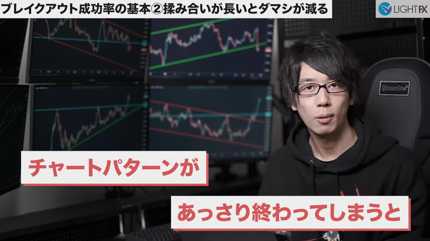 チャートパターンの揉み合いが長いほどブレイク後のダマシが減る