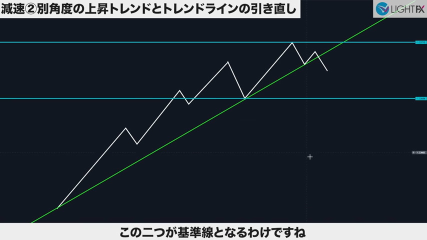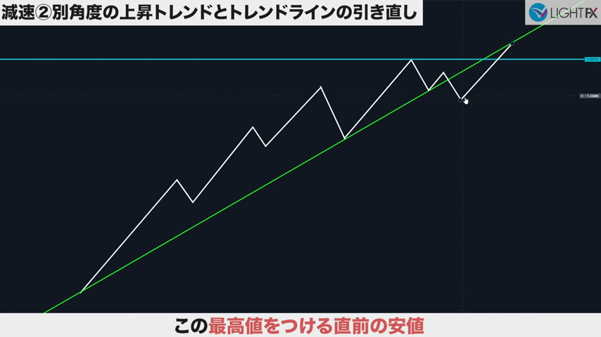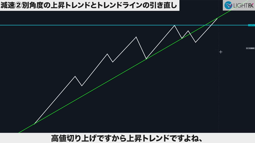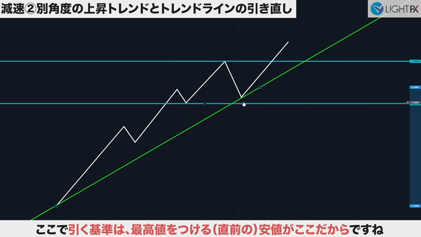 減速②別角度のトレンドラインとトレンドラインの引き直し