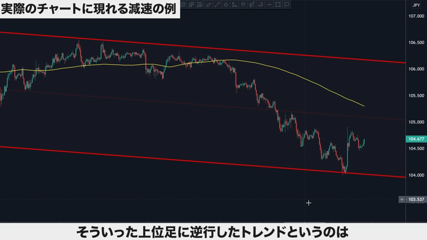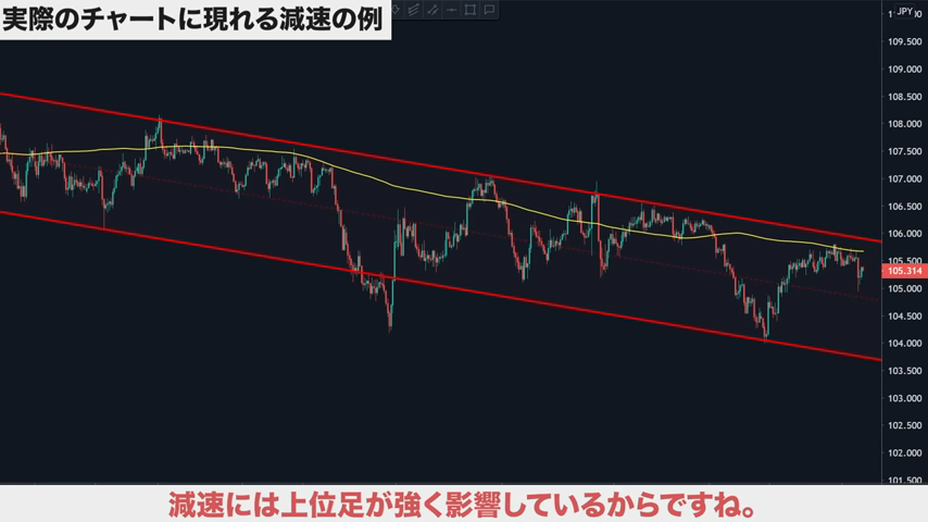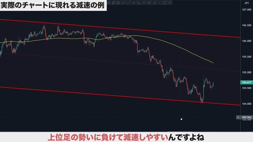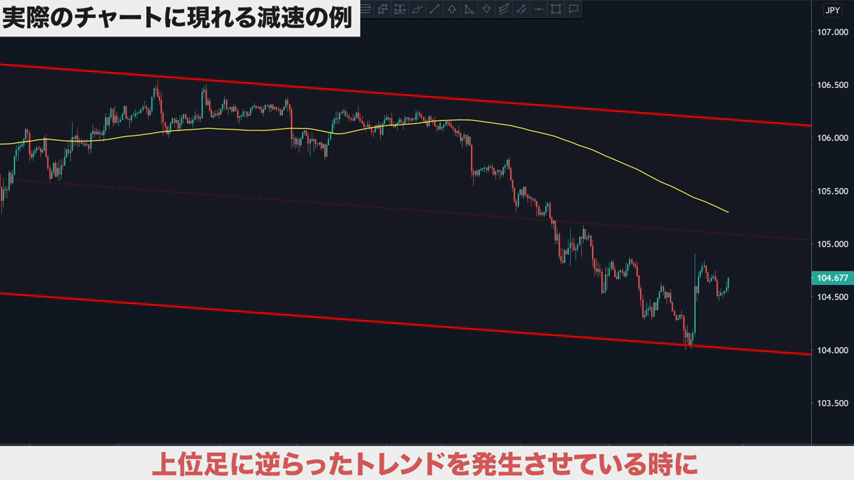 上位足に逆らったトレンドを発生させている時に、減速が起きやすい。