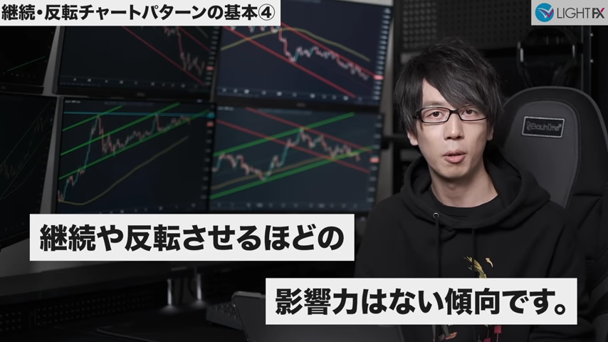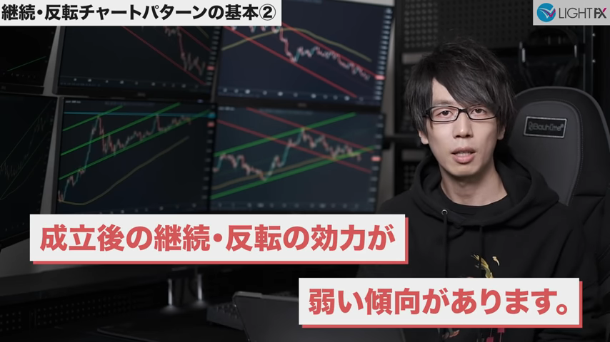 チャートパターンがあっさり終わってしまうと、ローソク足が伸び切らない傾向。