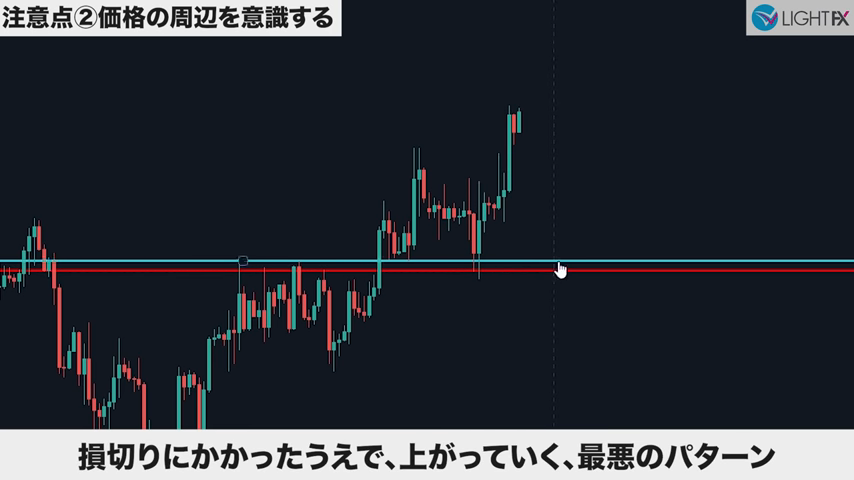 ストップロスは余裕を持つ。価格の周辺を意識する。