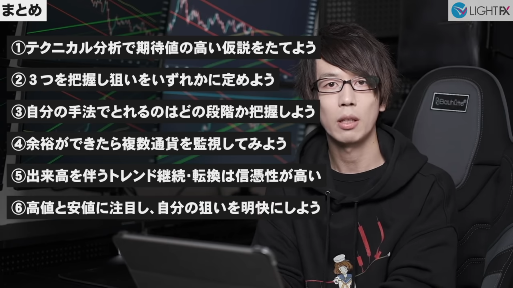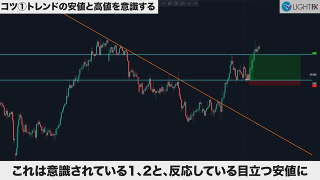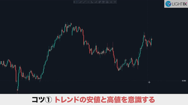 トレンドの高値と安値を意識する。