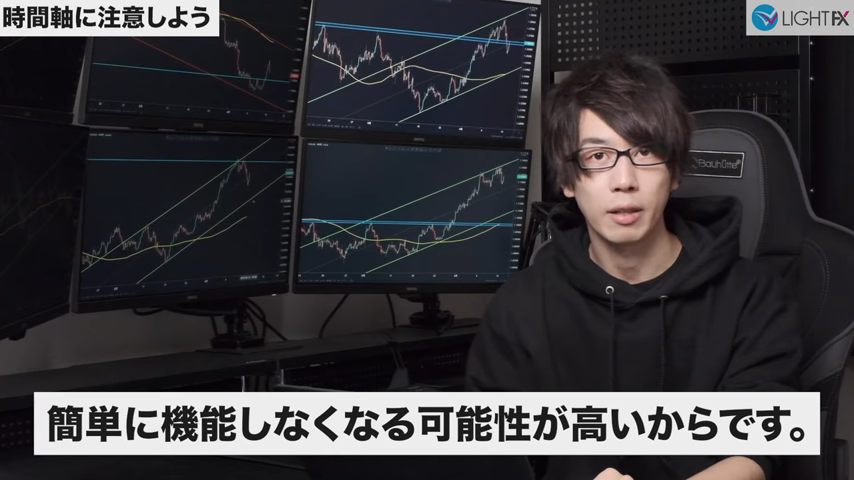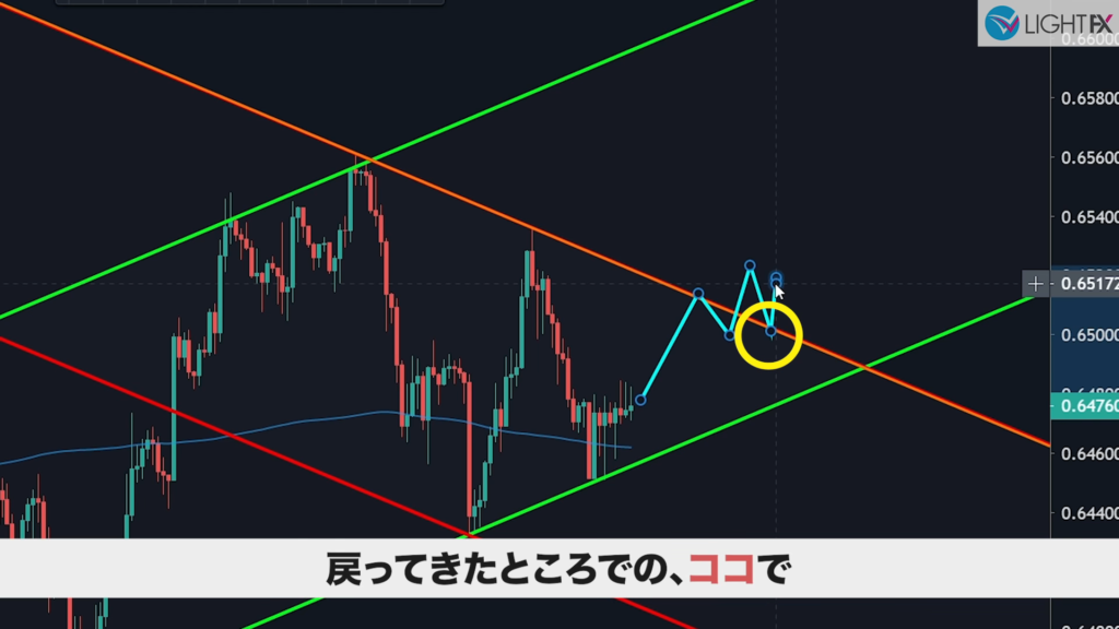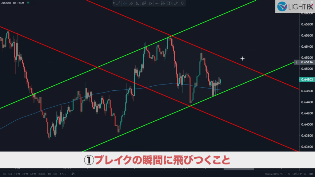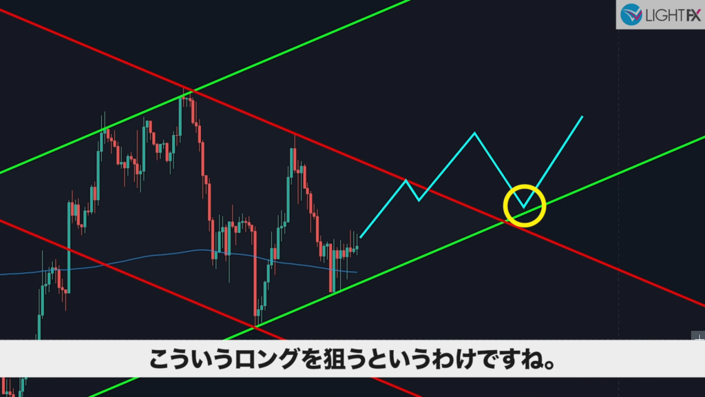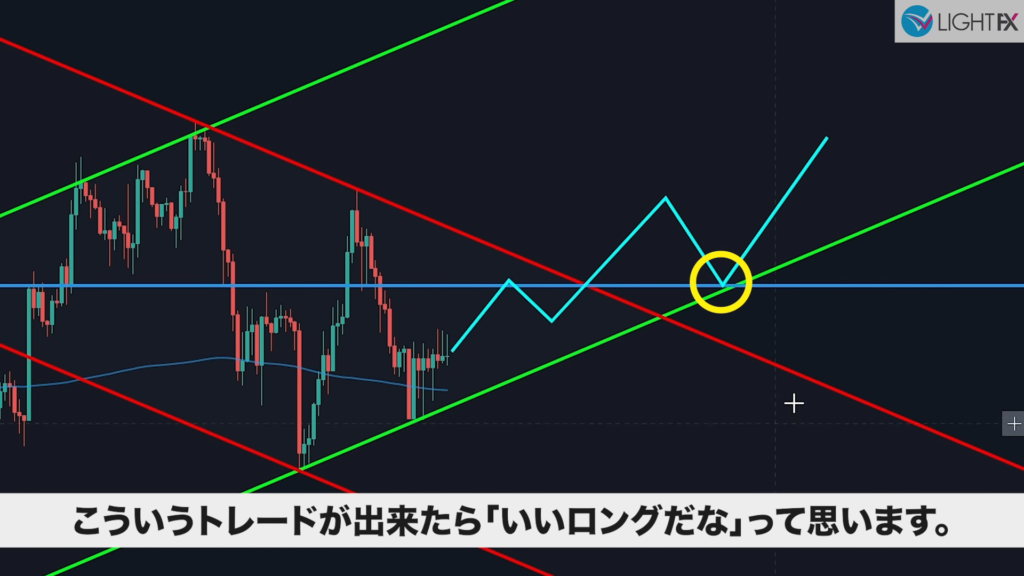 - 1時間足で急角度のラインを引きエントリーすると良い