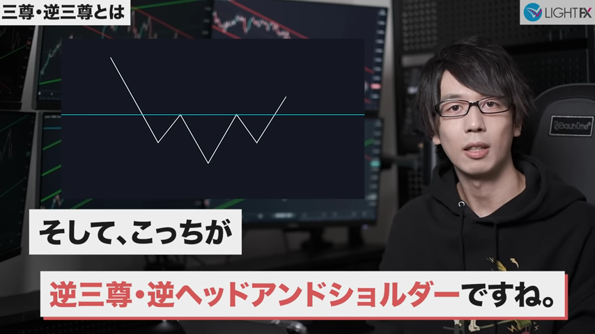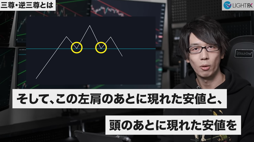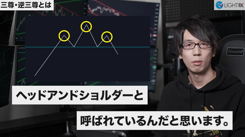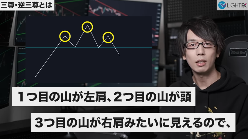 - 1時間足の上昇トレンド中に三尊成立(反転の三尊が成立)