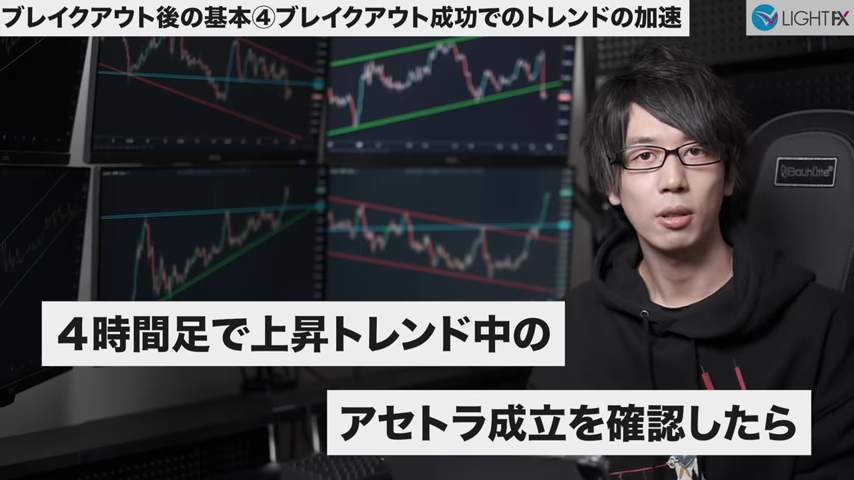 - 4時間足で上昇トレンド中のアセトラ成立を確認