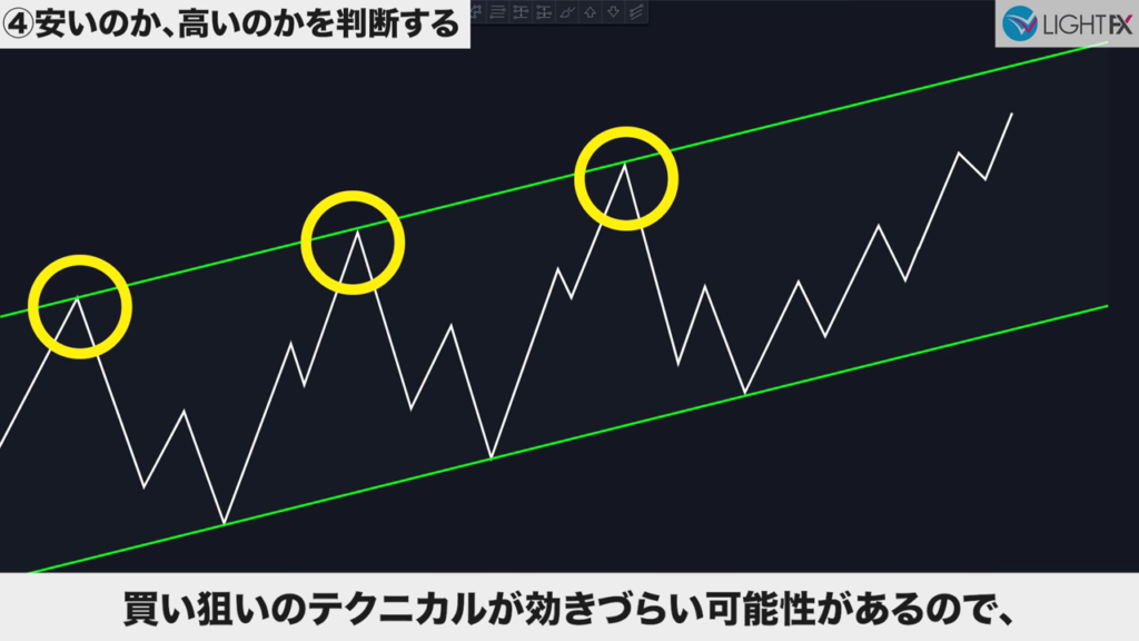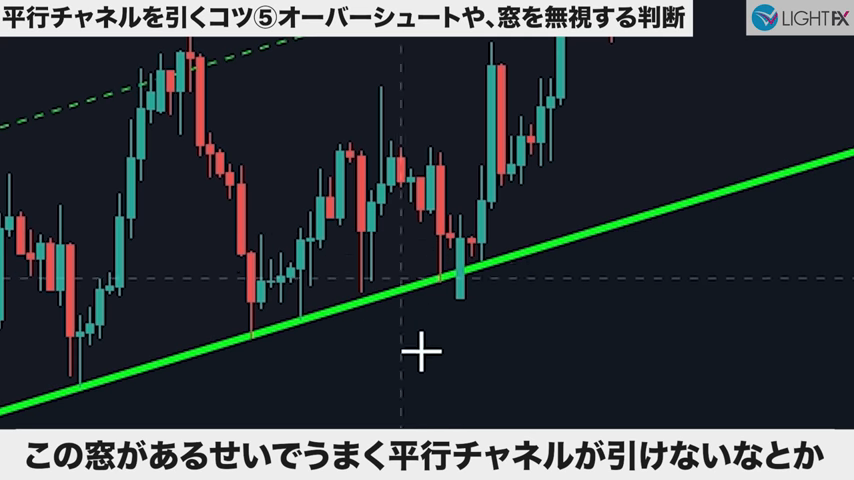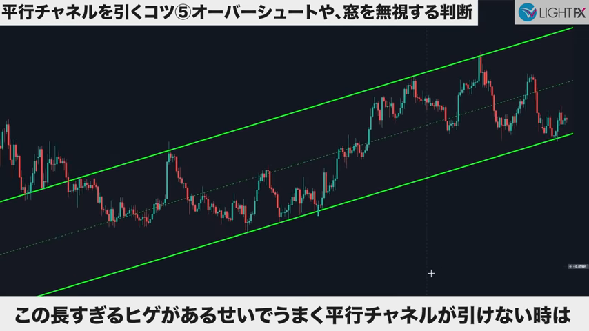 - 急角度のトレンドラインや並行チャネルが引ける