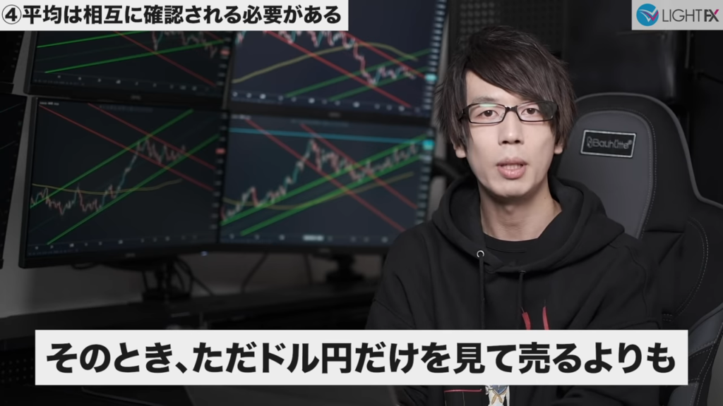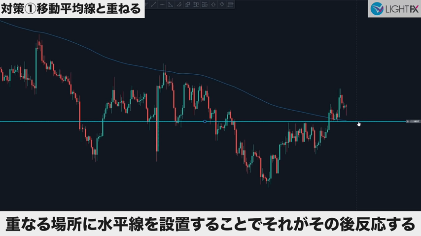 水平線と移動平均線は多くの市場参加者が意識しており、クロスする位置は根拠が2つあるので反応しやすい。