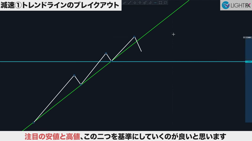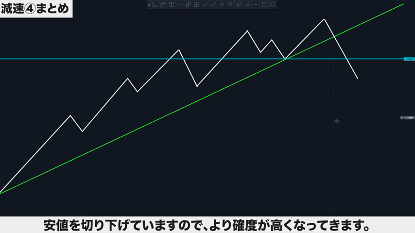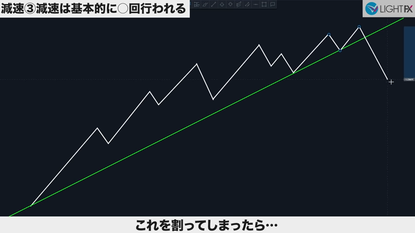 減速は、トレンドラインをブレイクするのが重要。