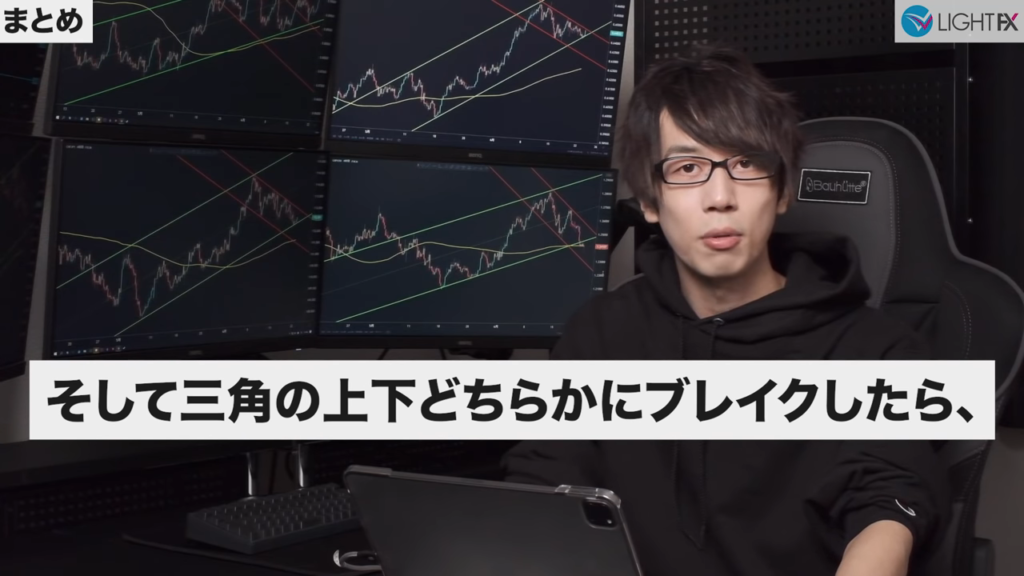 三角の先端で、小さなレンジや十字がたくさん出来ると、ブレイク後に伸びる。