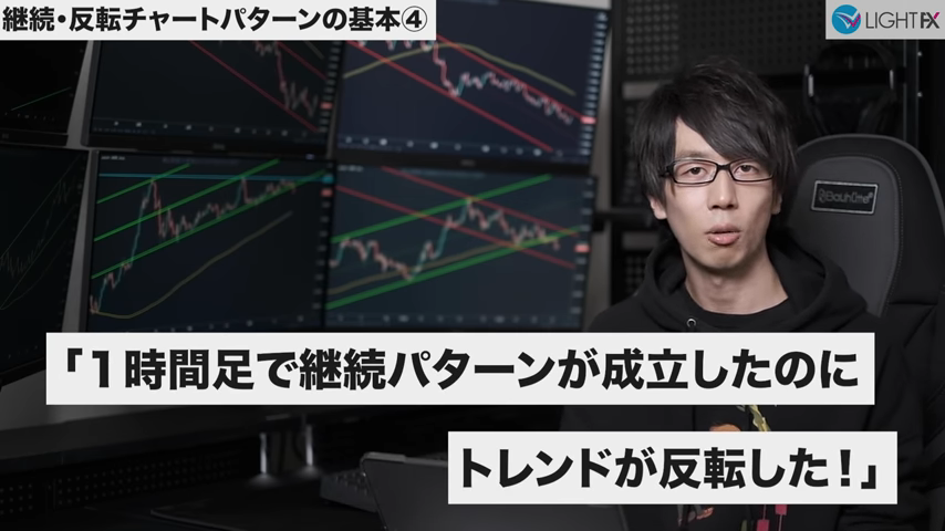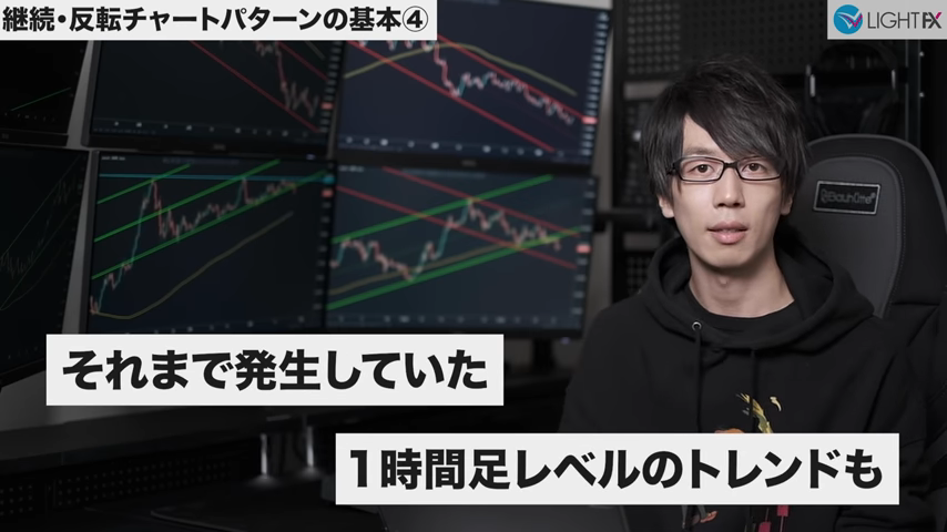 - 1時間足が下降トレンドに変わる