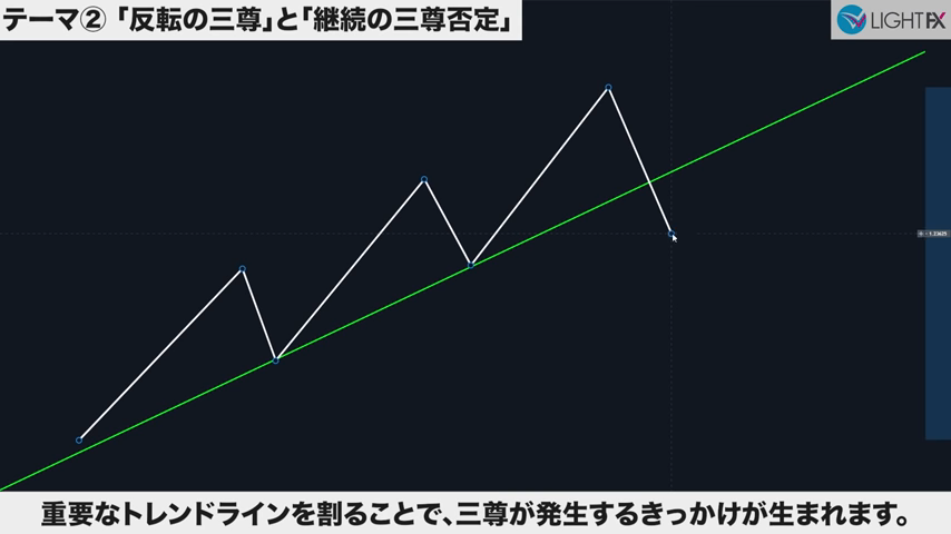 3回目のトレンドラインが現れブレイクして崩れたら、トレンド転換しやすくなる。