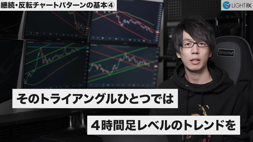 4時間足が下降トレンド。1時間足が上昇トレンド。の場合、1時間足で減速が起こるとトレ転して、下降トレンドになる。つまり、4時間1時間ともに下降トレンド発生。