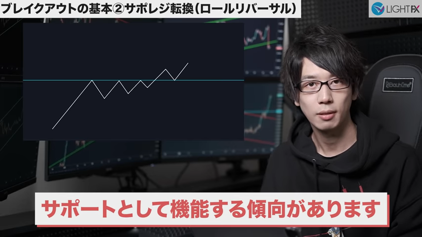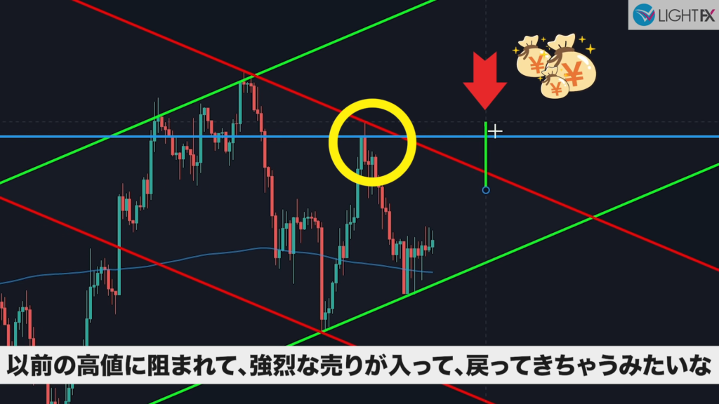 前の下降トレンドでレジスタンスとして効いているラインであった。