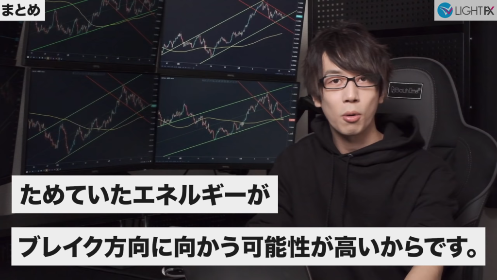 トレンドラインをブレイクしたら、減速するかも…と3パターンの選択肢の中の一つとして考える。