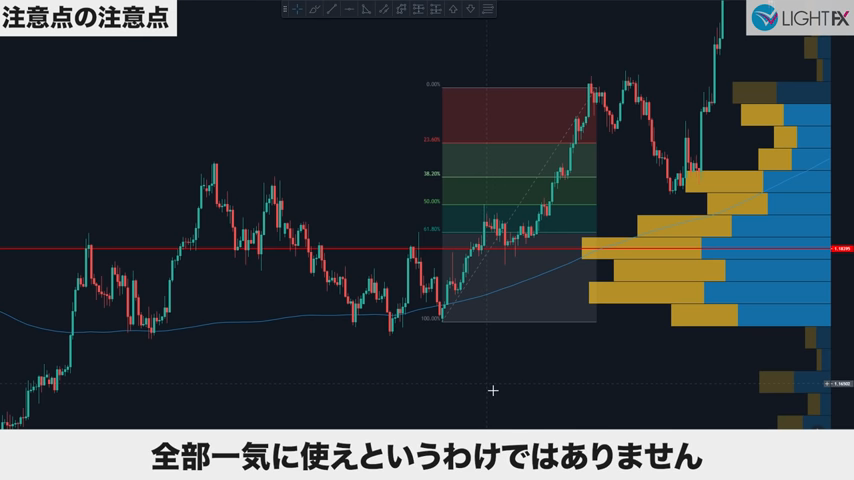 フィボナッチは多くの市場参加者に利用されており、黄金比を使って人間にとって意識されやすい数値を可視化するツール。