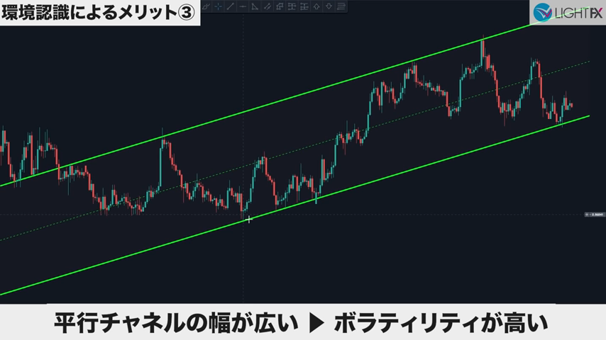 値幅が大きいボラがあるチャネルなら、狙える値幅も大きいと判断できる。ボラが小さいなら狙える値幅も小さい。