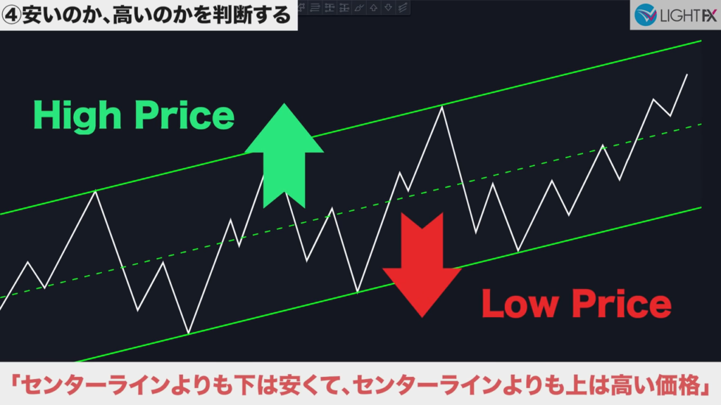センターラインより下は安い価格。下では積極的に買いを狙う。