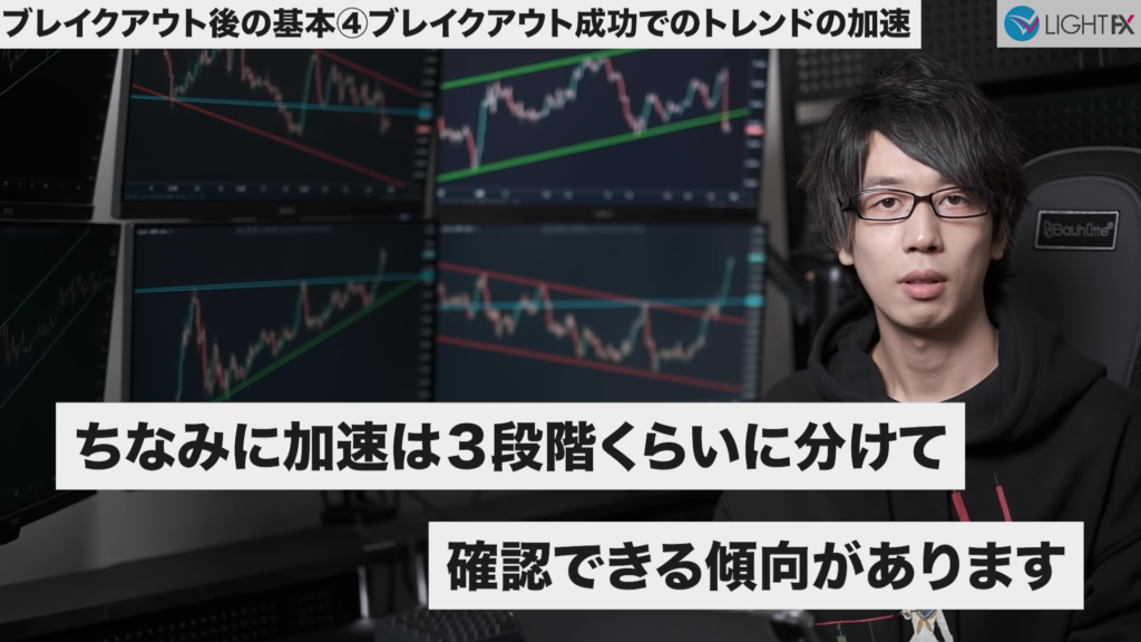加速は3段階くらいに分けて確認できる傾向にある。4回目の加速は、ロットを小さくしたりしてリスクを減らすと良い。