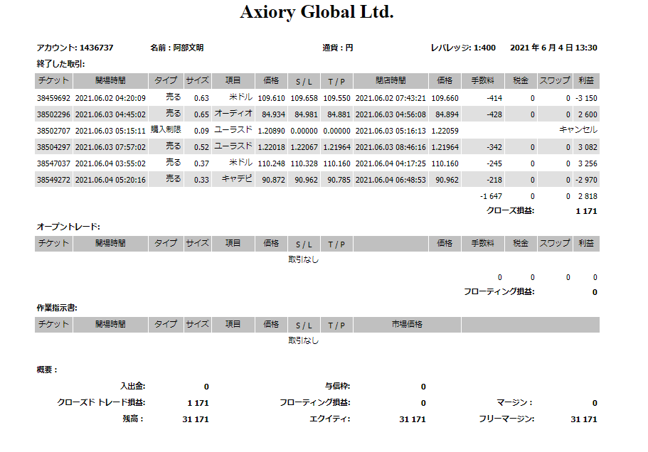 - 2021.06.03 AUD/JPY 勝ち