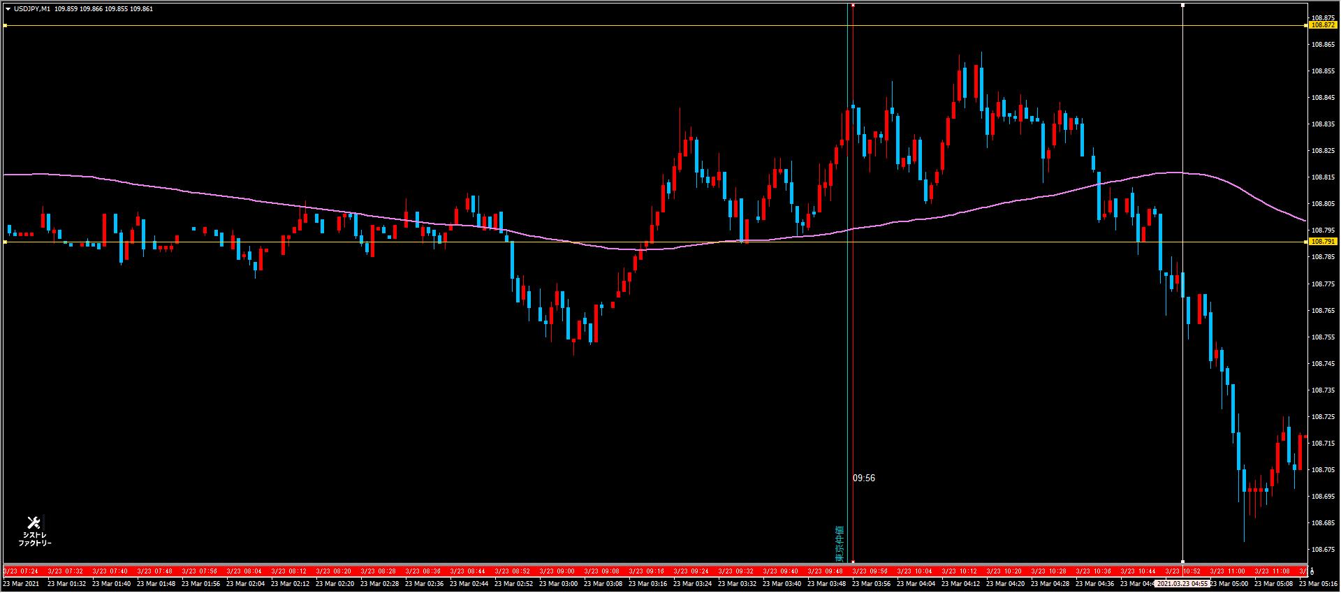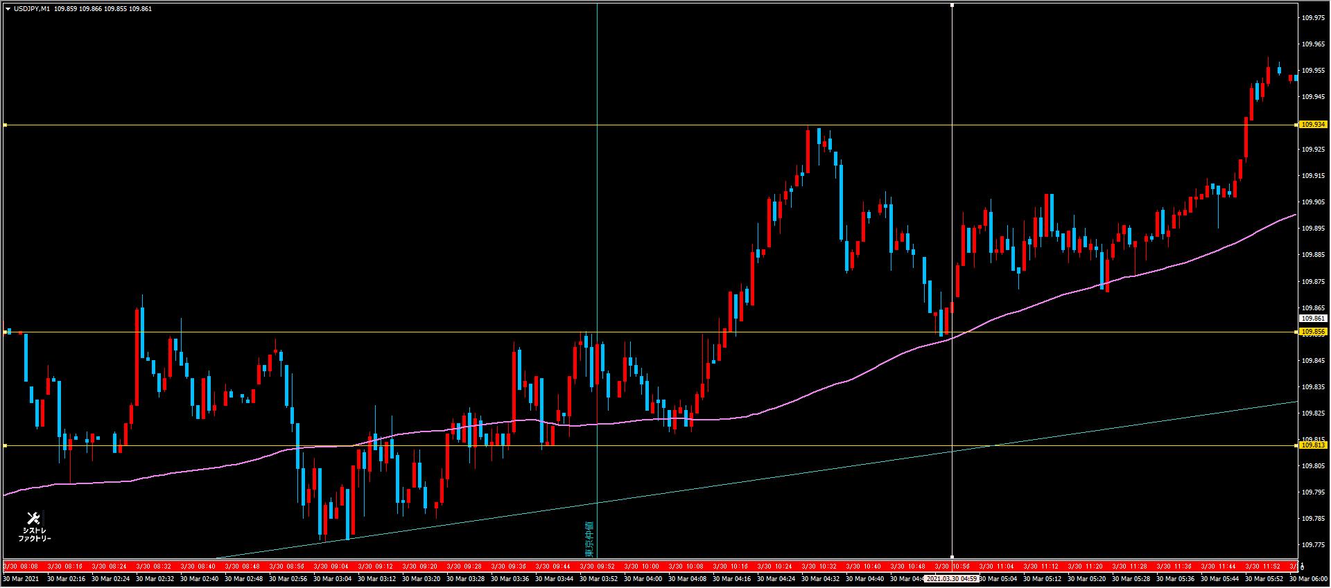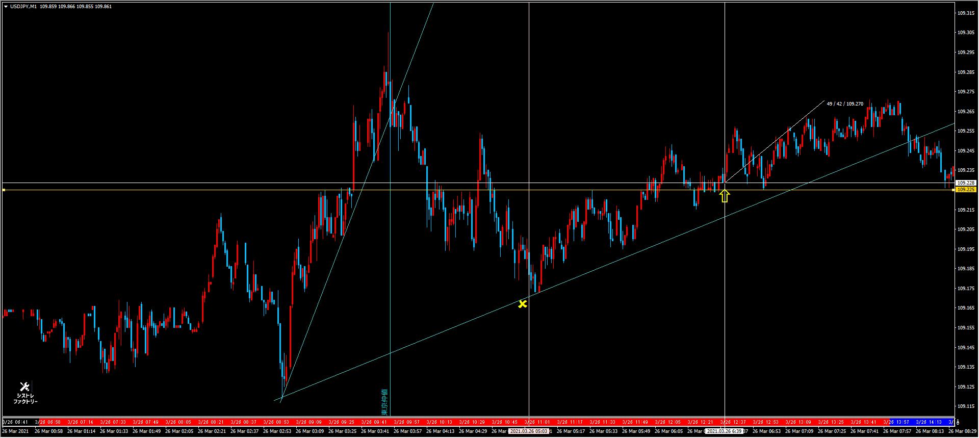 - 1時間のチャネルラインを抜けて来た時は、ダマシが多いため様子見