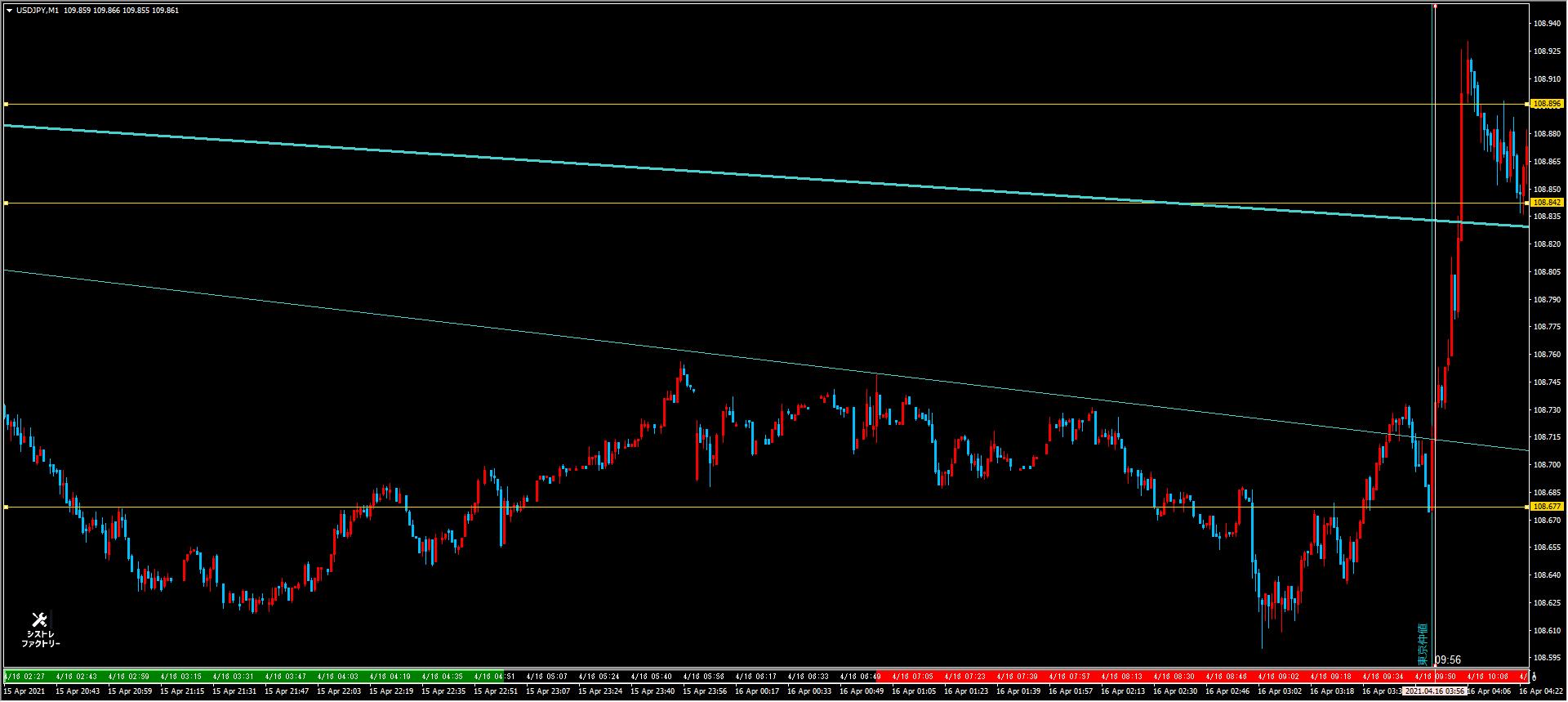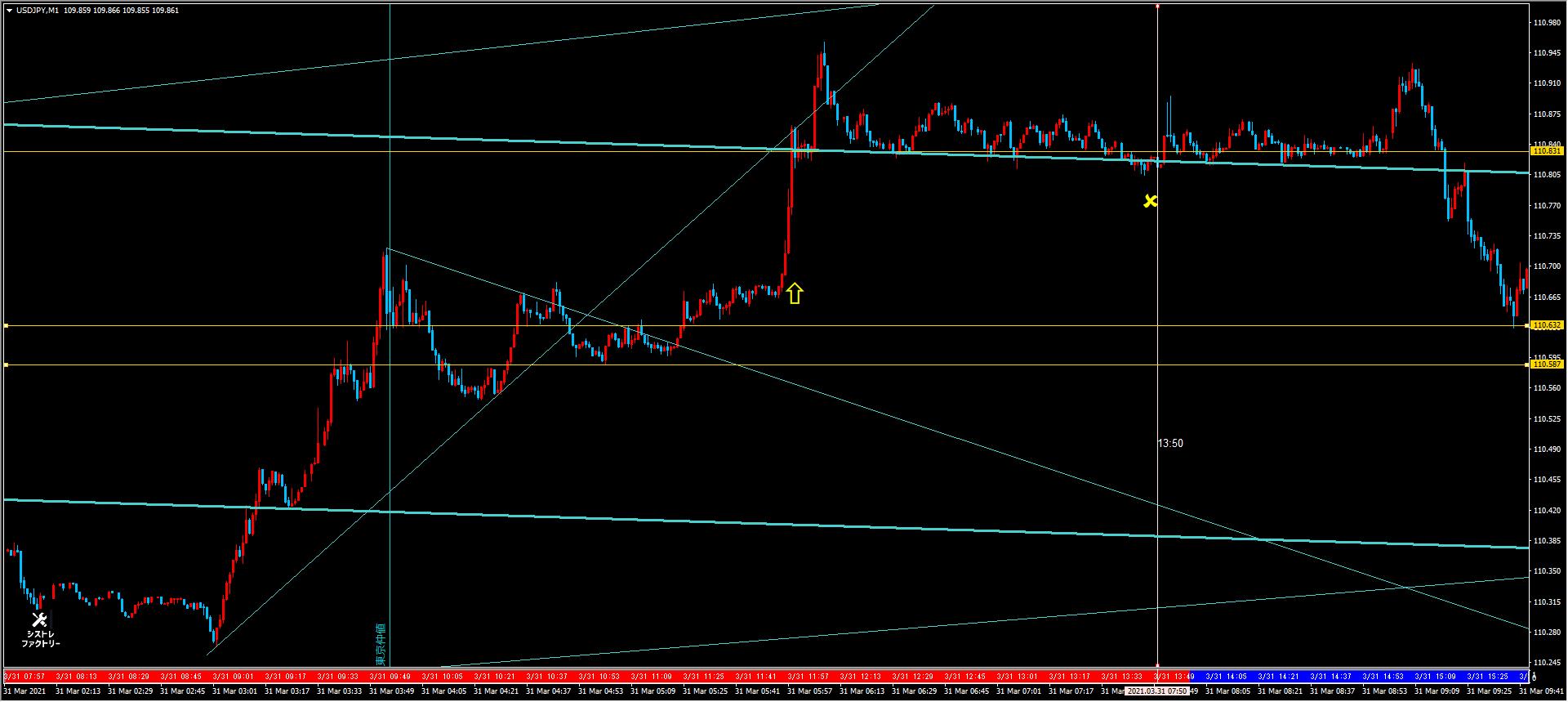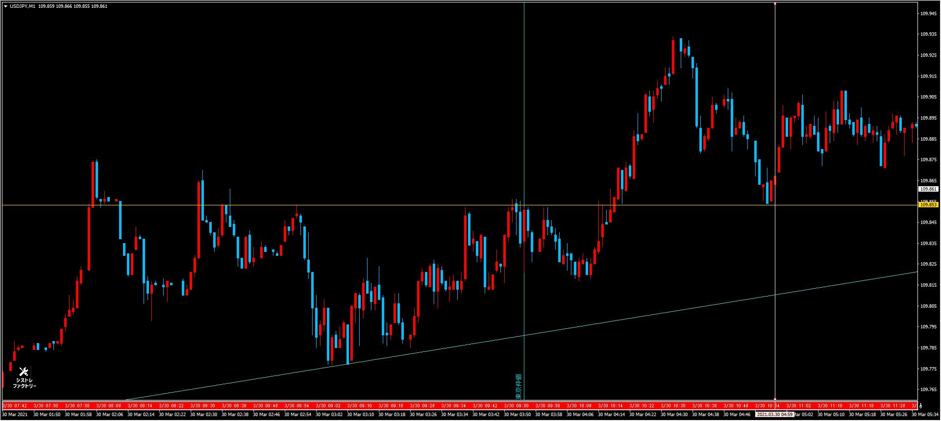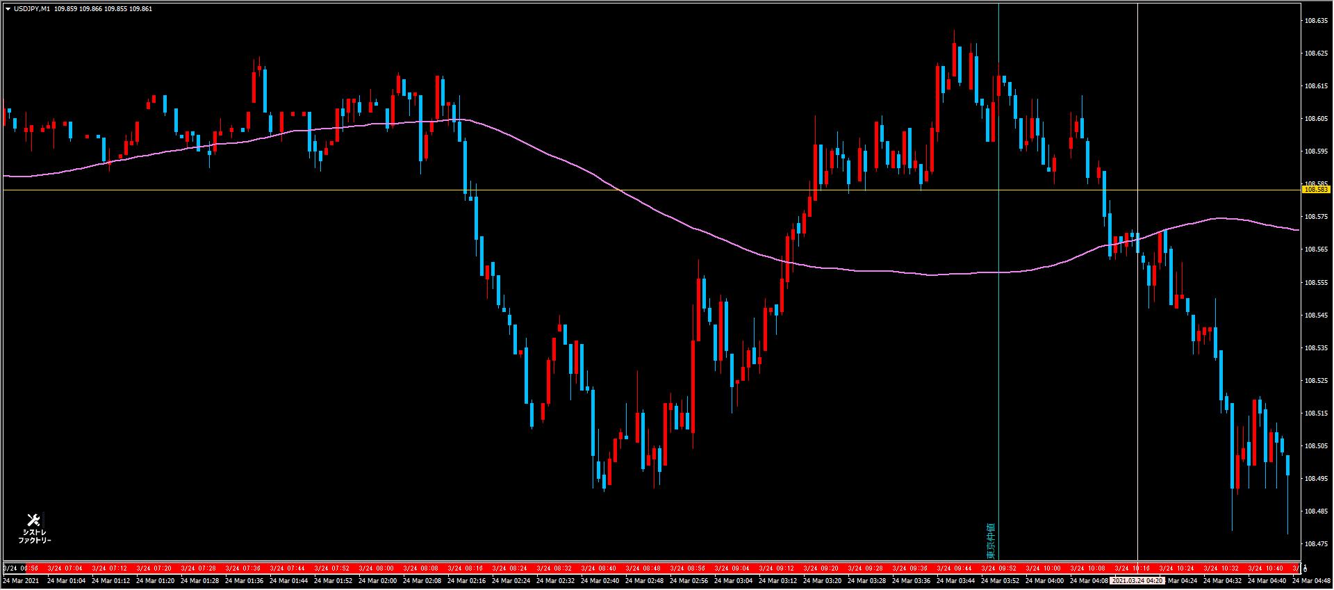 - 1時間のチャネルラインを抜けて来た時は、ダマシが多いため様子見