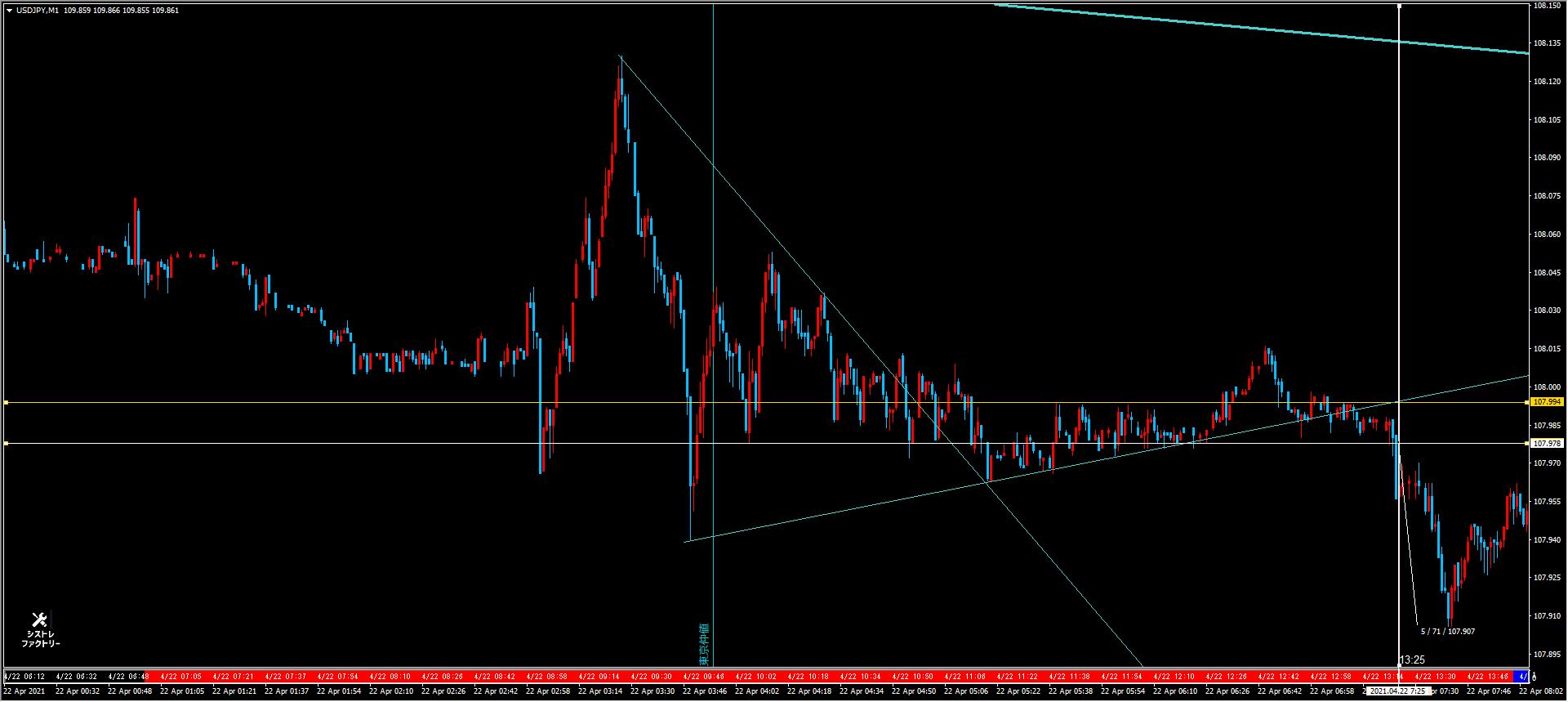 - 1時間足のチャネルラインに当たる時は下げ幅も大きいがダマシにも注意