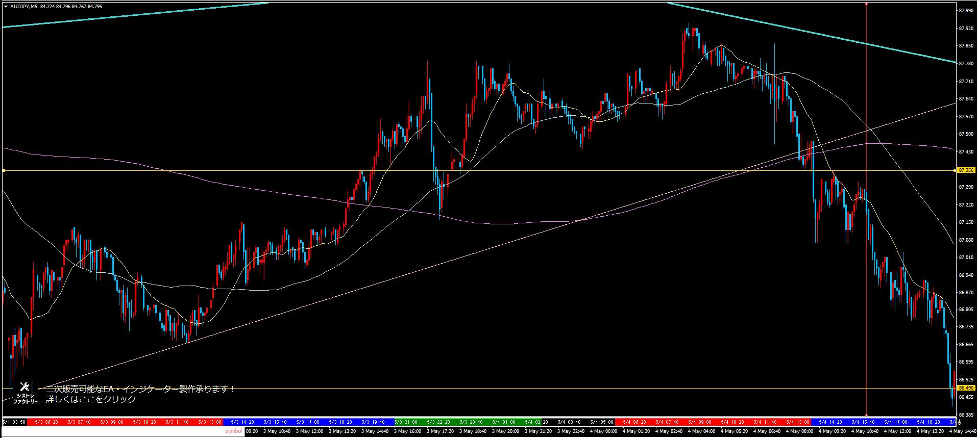 ただ、5・8・13だけだと長期の流れが分からない為、100SMAを追加した