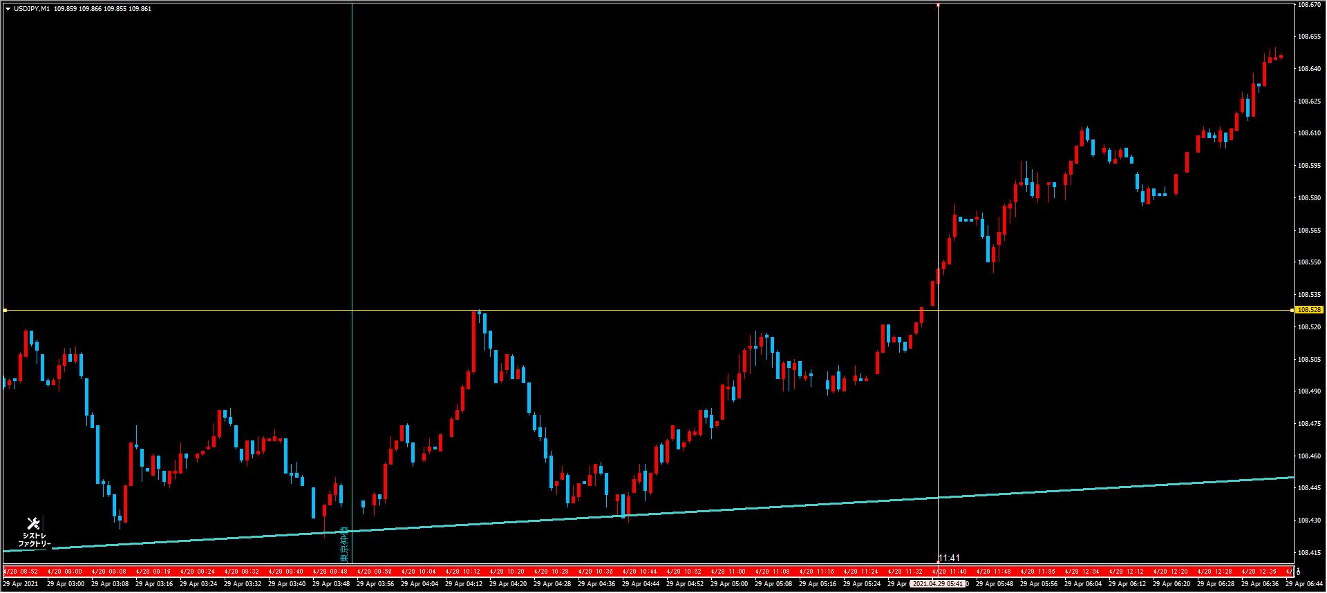 前日のニューヨーク時間から円安傾向にあり、オセアニア時間になってもその流れが続いている場合は、そのまま東京時間でも円安傾向が続き、仲値にかけて上昇する傾向があります。