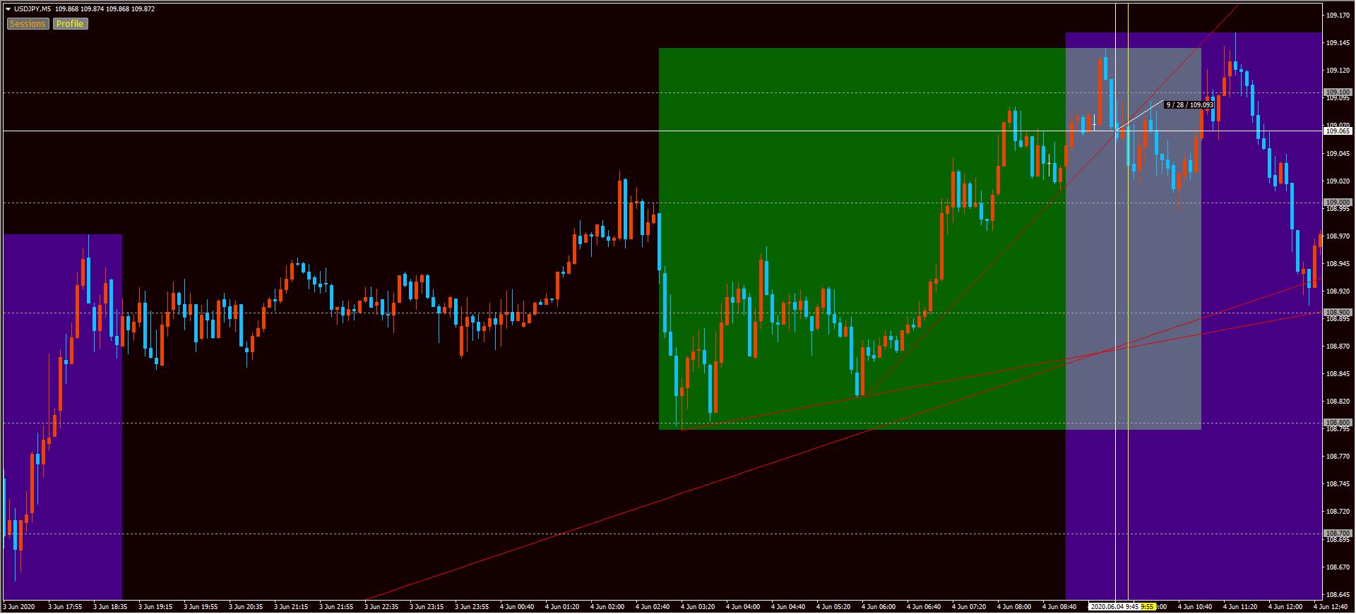 9時開始の5分足ローソク→ 方向性に付いていく